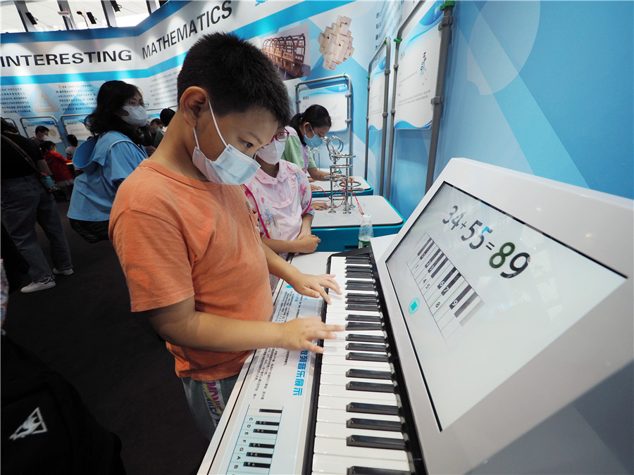 A boy plays music at the Beijing Science Center on Sept 12, 2021. [Photo/IC]