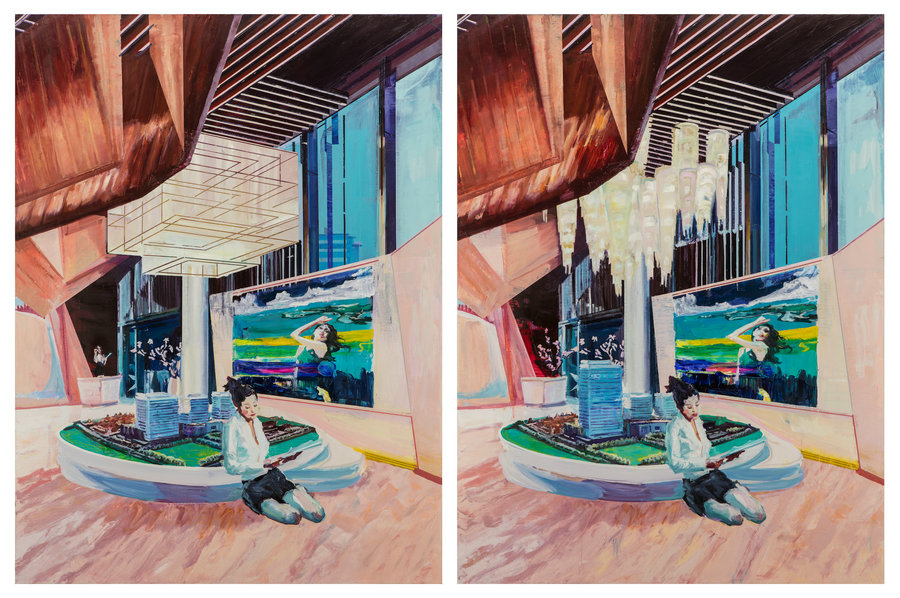 Spot the Difference • Sales Lady (There are 5 differences in the two paintings)