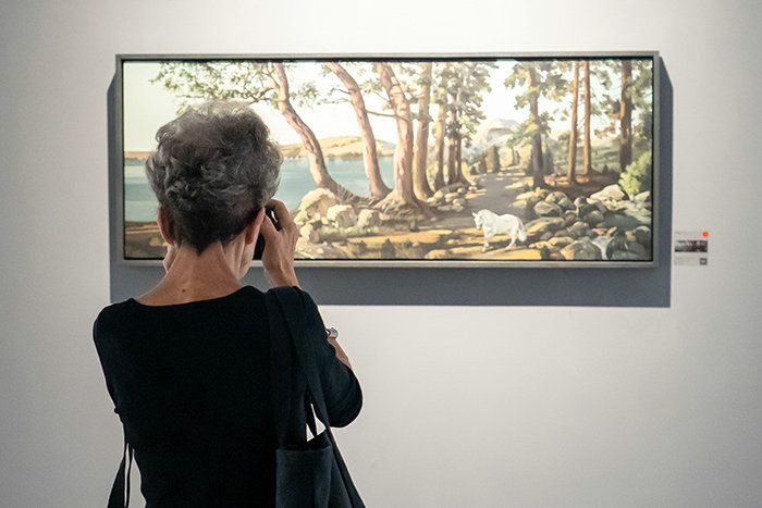 Jing Tao's paintings achieve a harmony between delivering a peaceful atmosphere and a theatrical touch. [Photo provided to China Daily]