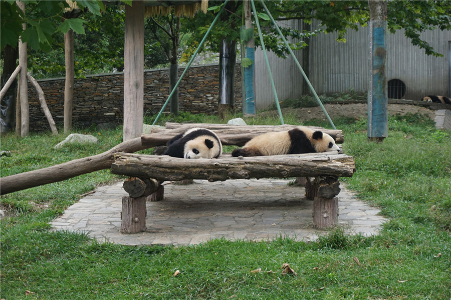 Pandas are seen at the Wolong China Giant Panda Garden in Gengda town, Wenchuan county of Southwest China's Sichuan province, Sept 23, 2021. [Photo by Bi Nan/chinadaily.com.cn]