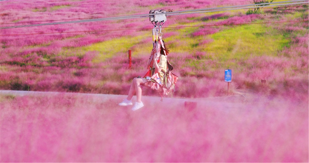 Fields of pink grass add to seasonal colors of Hangzhou