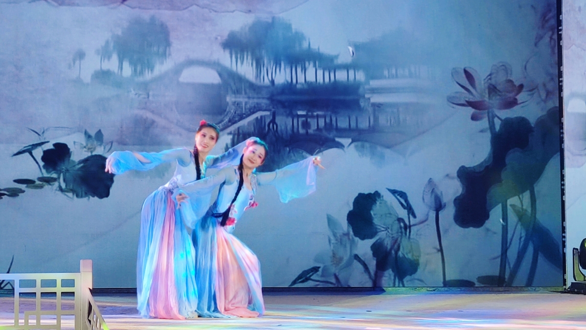 Two dancers present the Kunqu-featured dance in the opening ceremony. [Photo by Liu Tianyang/chinadaily.com.cn]