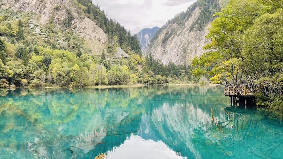 A photo taken on Sept 25 shows Five Flower Lake at Jiuzhaigou National Park in Jiuzhaigou county, Aba Tibetan and Qiang autonomous prefecture, Sichuan province.[Photo by Yao Jin/provided to chinadaily.com.cn]