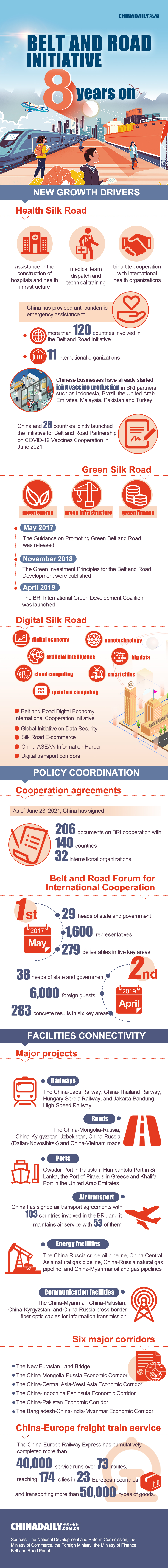 Editor's note: Over the past eight years, the Belt and Road Initiative has changed from concept to practice, creating opportunities while benefiting the world. Amid the COVID-19 pandemic, the Belt and Road cooperation has demonstrated its strong resilience and vitality. Let's review how this key initiative has helped improve people's lives across the globe.