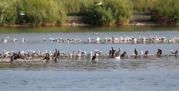 The Hunchun River in Hunchun city, Yanbian Korean autonomous prefecture in Northeast China's Jilin province, has recently seen flocks of seagulls coming to rest and forage for food. [Photo provided to chinadaily.com.cn]