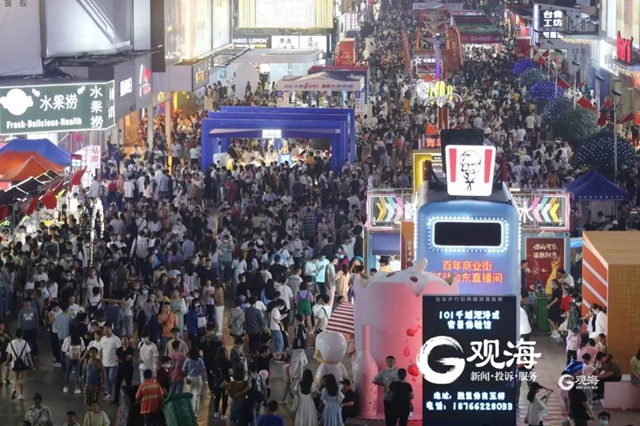 From Oct 1 to 7, the top 10 key retail and commercial enterprises in Qingdao generated sales of 938 million yuan, up 19.6 percent year-on-year. Popular commercial pedestrian streets, such as the Taidong Pedestrian Street, welcomed more than 1 million visitors and had a turnover of more than 100 million yuan.