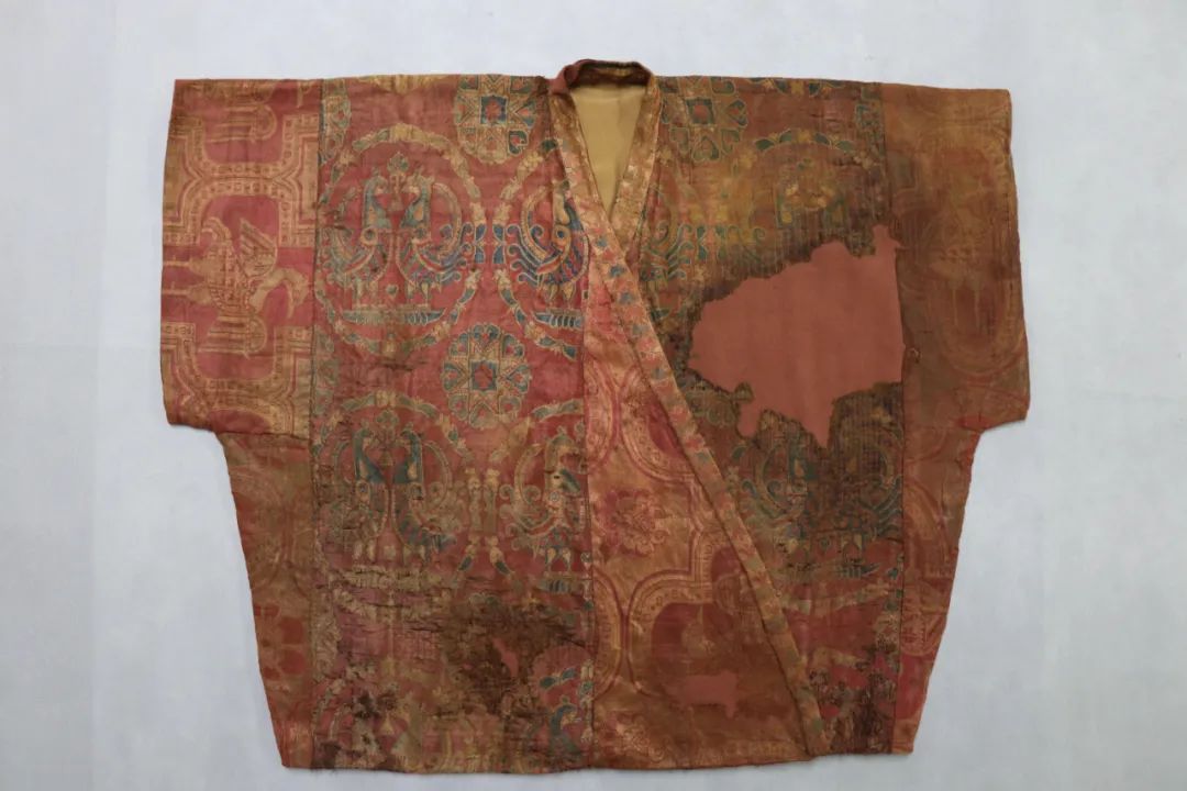 Brocade half-sleeved garment with paired-bird medallion patterns from the permanent collection of the Gansu Provincial Museum [Photo/Official WeChat account of Gansu Provincial Museum]