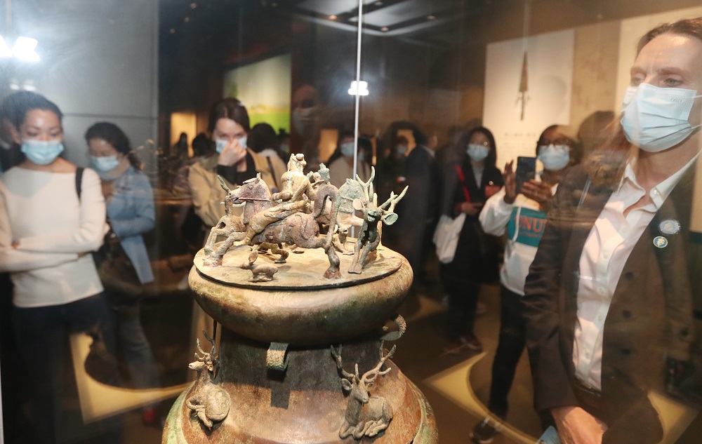 A group of diplomatic envoys to China attending the COP15 were invited to the Yunnan Provincial Museum in Kunming on Oct 12. Cultural relics on display at ongoing exhibitions in the museum presented them with the profound cultural background of this treasured place.