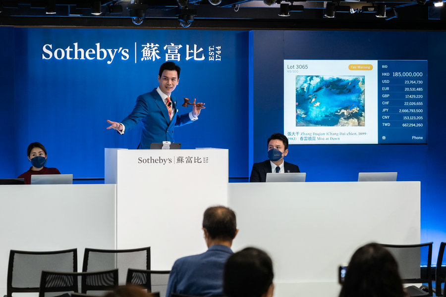 Mist at Dawn by Zhang Daqian is sold HK$214.6 million ($27.58 million) at Christie's auction on Nov 11.