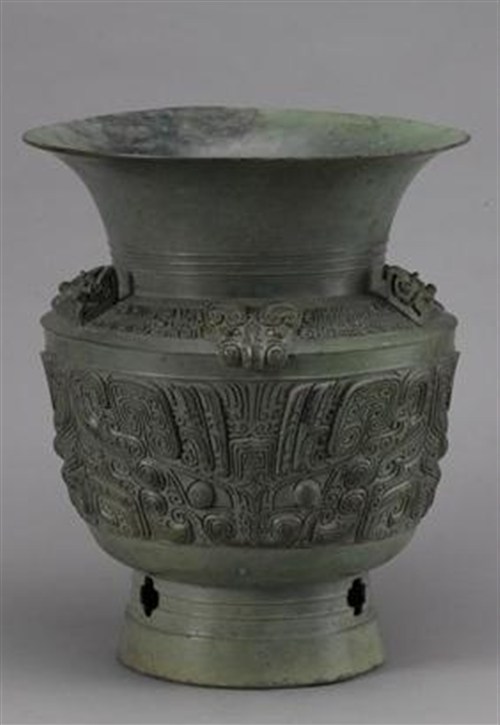 A bronze zun vessel with animal mask designs from the Shang Dynasty (c.16th century-11th century BC) , part of the collection of the Anhui Museum. [Photo/ahm.cn]