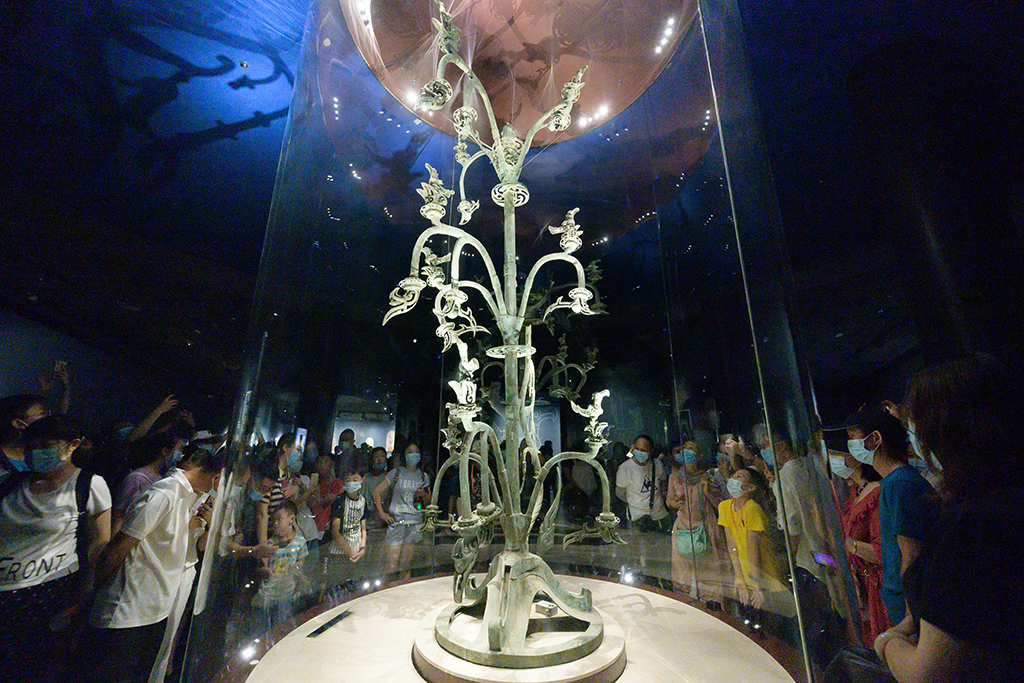 Since the first excavation work carried out at the site in 1986, an incredible and immense world of bronzes has been presented to the public, with the discovery of various cultural relicssuch as solemn bronze figurines, human face masks, towering bronze trees, flying birds, leaping dragons and reptiles, and a crowing rooster.