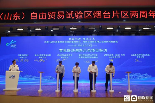 The Yantai Area of China (Shandong) Pilot Free Trade Zone signed a cooperation agreement with Yazhou Bay Science and Technology City in Sanya, Hainan province on Aug 31.