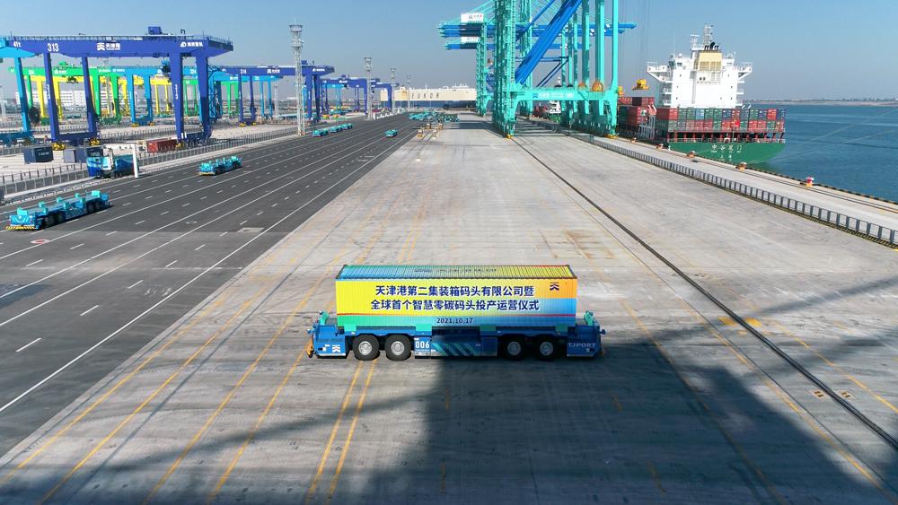 Zero-carbon dock begins operations in Tianjin