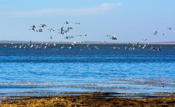 Hundreds of thousands of migrant birds rest at the Dalai Nuur Lake in Chifeng, Inner Mongolia autonomous region. [Photo by Meng Zhigang/provided to chinadaily.com.cn]