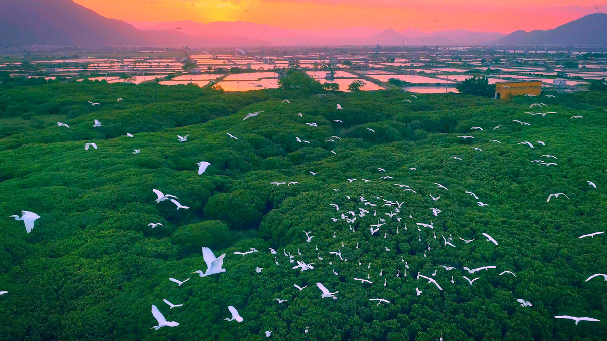 A number of wetland migrant birds enjoy themselves at the Zhangjiangkou national mangrove forest nature reserve in Zhangzhou, Fujian province, in October. [Photo by Liu Liangzhen/For chinadaily.com.cn]