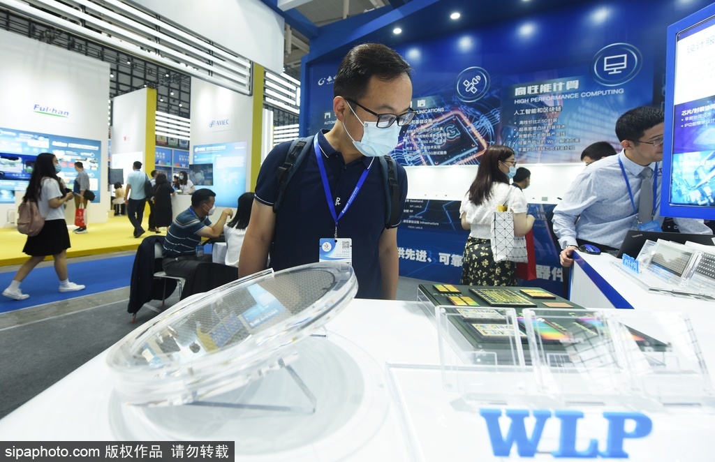 A visitor looks at the chips developed by JCET Group, at the World Semiconductor Conference in Nanjing, Jiangsu province, on June 9, 2021. [Photo/Sipa]