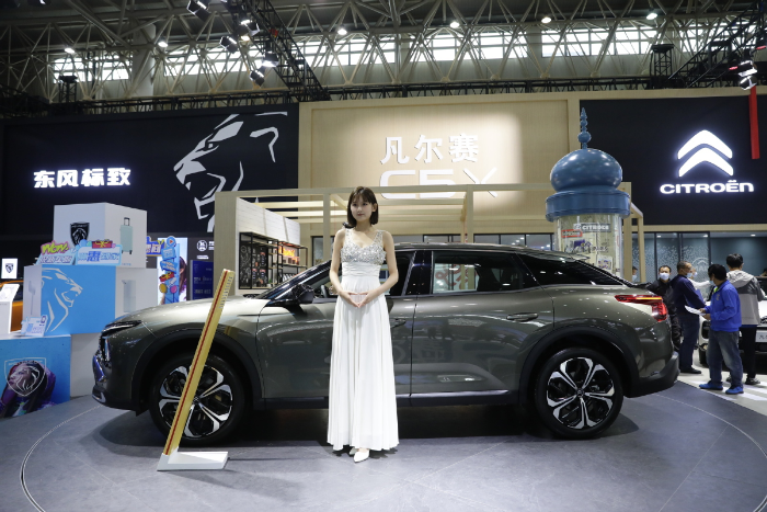 A model poses with a Citroen C5X at the Wuhan Motor Show. [Photo/IC]