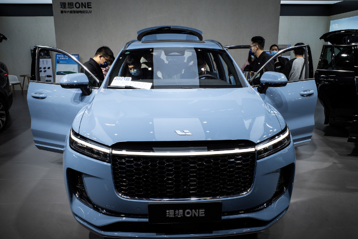 Visitors look at a Li ONE model at the Wuhan Motor Show. [Photo/IC]