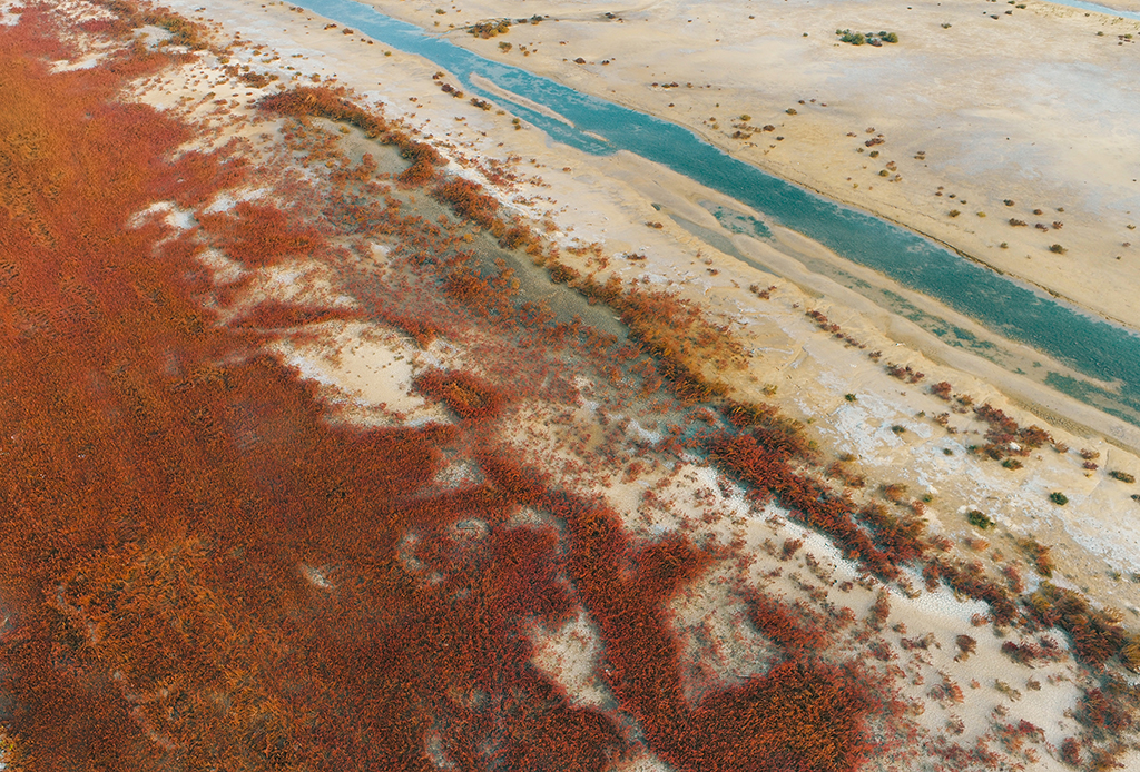 Large groups of seagrass in Lianyungang, East China’s Jiangsu province 'dye' a wetland red. [Photos/IC]