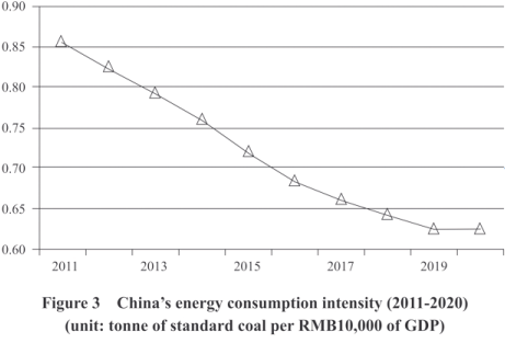 China is rapidly reducing its energy consumption intensity. Preliminary calculations show that the reduction from 2011 to 2020 reached 28.7 percent, one of the fastest in the world. During the 13th Five-year Plan period (2016-2020), China fueled an average annual economic growth of 5.7 percent with an average annual energy consumption growth of 2.8 percent, and the amount of energy it saved accounted for about half of the global energy savings in the same period. China has been ranked among leading countries in the efficiency of coal consumption in its coal-fired power generation units. By the end of 2020, it had approximately 950 million kW of installed capacity in ultra-low emission units, and over 800 million kW of installed capacity in units that had undergone energy-saving transformation. The average coal consumption of thermal power plants had decreased to 305.8 grams of standard coal per kWh, down more than 27 grams compared with 2010. The energy saved represents a reduction of 370 million tonnes of carbon dioxide emission by coal-fired power generation units in 2020 compared with 2010.