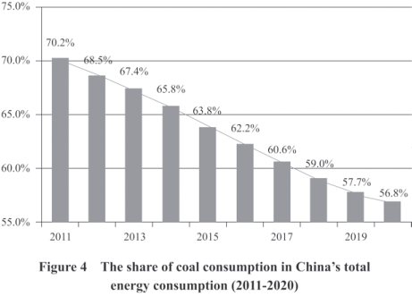 China has accelerated the transformation to a clean and low-carbon energy consumption structure. In order to address pollution and climate change caused by fossil fuel combustion, China has strictly controlled coal consumption, and the proportion of coal consumption has continued to decline significantly. In 2020, China's total energy consumption was kept under 5 billion tonnes of standard coal. The proportion of coal in its total energy consumption dropped from 72.4 percent in 2005 to 56.8 percent in 2020. China exceeded the target for reducing coal production capacity and eliminated more than 45 million kW of outdated coal and electricity production capacity during the 2016-2020 period. By the end of 2020, the clean heating rate in winter in northern China had increased to more than 60 percent. Coal for non-industrial sectors has been replaced with cleaner energy in the power supply to around 25 million households in Beijing, Tianjin, Hebei and surrounding areas and on the Fenwei Plain, representing a reduction of around 50 million tonnes of coal for non-industrial sectors, which is equivalent to cutting about 92 million tonnes of carbon dioxide emissions.