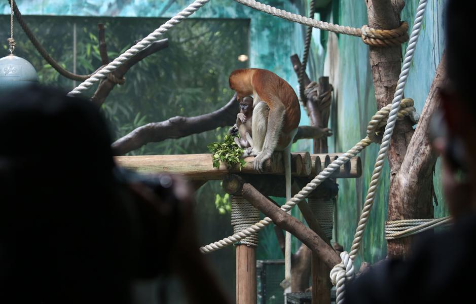 Long-nosed monkey babies make public debut