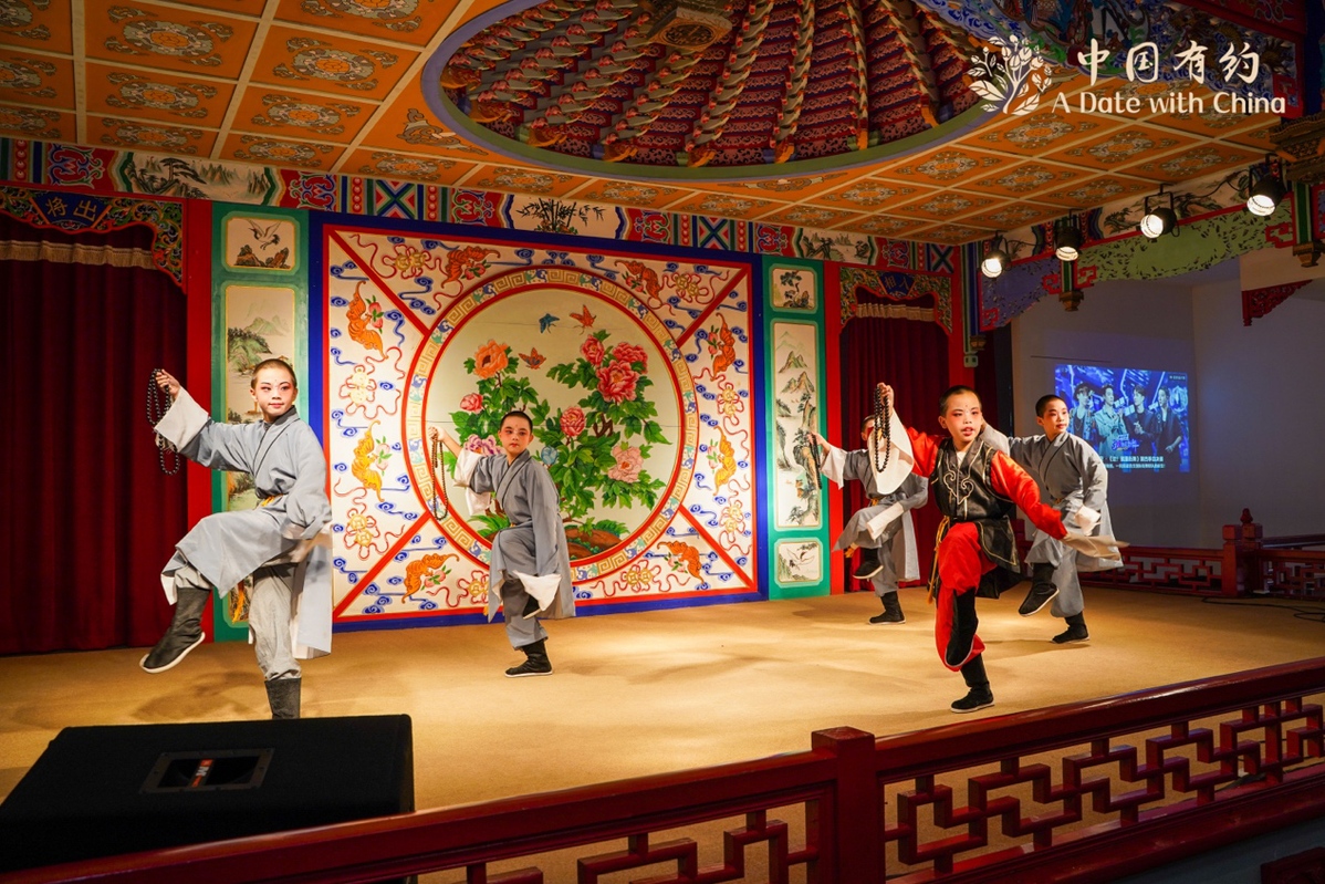 Young artists stage a Kunqu Opera performance in Qiandeng Ancient Town of Kunshan, East China's Jiangsu province, on Oct 26, 2021. [Photo/chinadaily.com.cn]