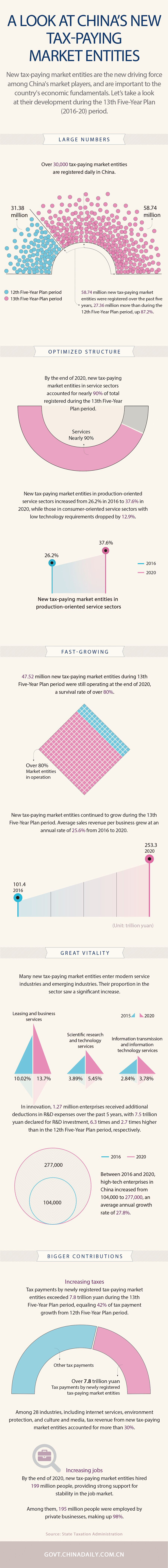 New tax-paying market entities are the new driving force among China's market players, and are important to the country's economic fundamentals. Let’s take a look at their development during the 13th Five-Year Plan (2016-20) period.