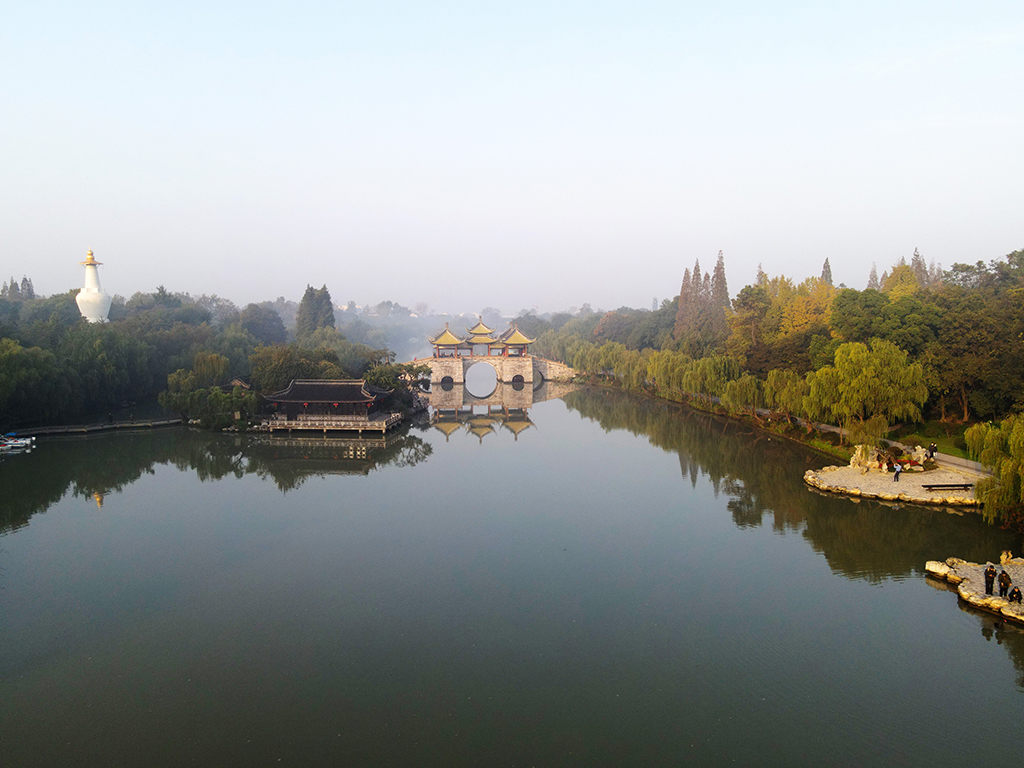 Slender West Lake complements the Wuting Bridge and a white pagoda in Yangzhou, East China’s Jiangsu province [Photo/IC]