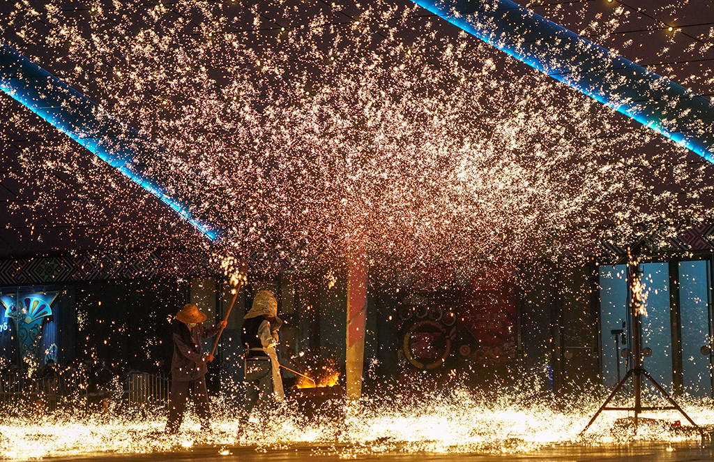 Traditional fireworks show presented in S China