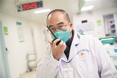 Zhang was incredibly busy at work, beginning on Dec 29, 2019. That was the day the hospital received the first group of patients transferred from Hubei Provincial Hospital of Integrated Chinese and Western Medicine. All of the hospital's 21 departments finished preparations for treating the patients, in accordance with the schedule set by Zhang. Despite his physical exhaustion, many of the medical staff said, "Director Zhang is working harder than us!" During that initial period, Zhang's strong voice, and the image of him limping through the hospital, inspired his colleagues to show bravery in the face of the epidemic.