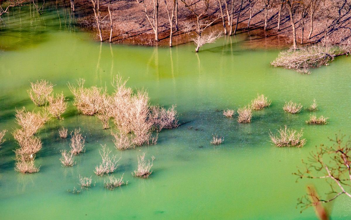 A section of the Yujiang River in Wendou town of Lichuan, Hubei province, presents striking views at this time of year as trees that grow in the water turn red. [Photo by Chen Xiaolin/For chinadaily.com.cn]