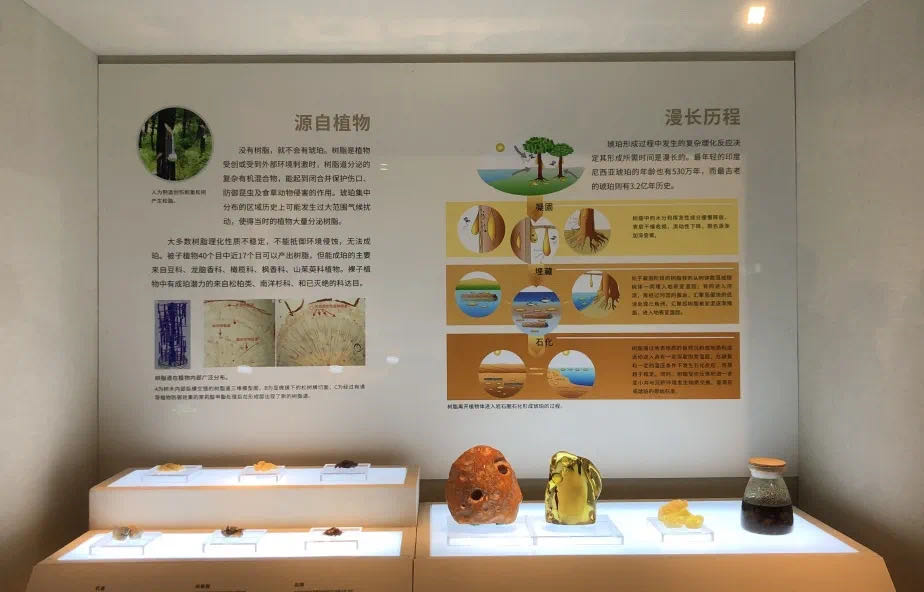 The exhibition illustrates the formation of amber. [Photo/Official WeChat account of Shenzhen Museum]