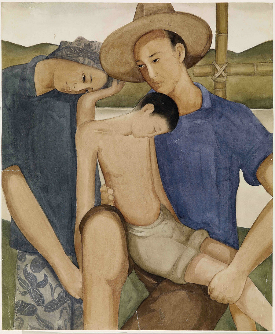 A watercolor by Pang Xunqin on show. [Photo provided to China Daily]