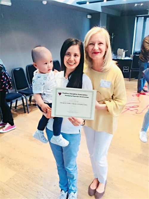 During the four years she worked at the languagetraining school, Zheng participated in various training courses — including some involving positive discipline and the Montessori approach to education — to improve her teaching skills. She received many certificates, such as the certificate issued by Association Montessori Internationale and the ICTP (Online International Chinese Teacher Training Program) certificate issued by Beijing Language and Culture University.