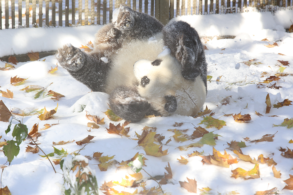 After a recent snowfall in Jinan, East China’s Shandong province, a giant panda in the Jinan Zoo went outside to have fun and roll in the snow. So cute!