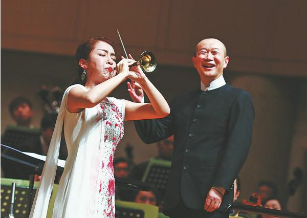 On Sunday, she held a concert in Shanghai along with the Shanghai Philharmonic Orchestra. Under the baton of conductor Zhang Liang, she played music pieces arranged for suona and symphony orchestra, including a world premiere of a music piece titled Opening the Big Gate composed by Xu Jianqiang and The Yellow River Ballad composed by Zhou Chenglong.