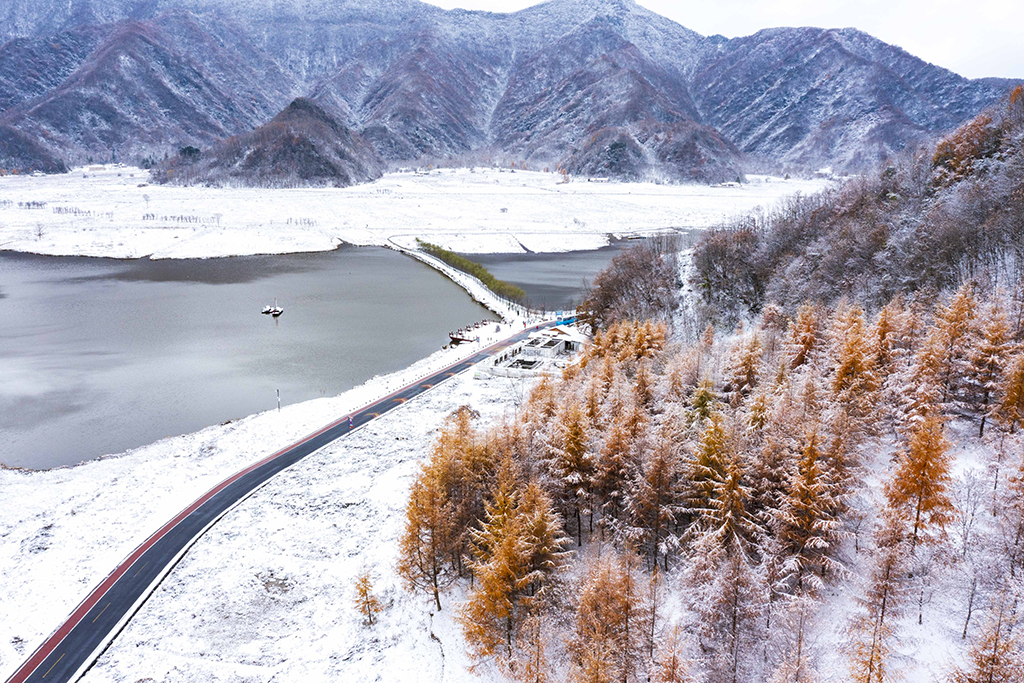 After a recent snowfall, the forest and lake in the Shennongjia Forestry District, Central China’s Hubei province are clad in silvery white, complementing the autumn leaves. [Photo/IC]