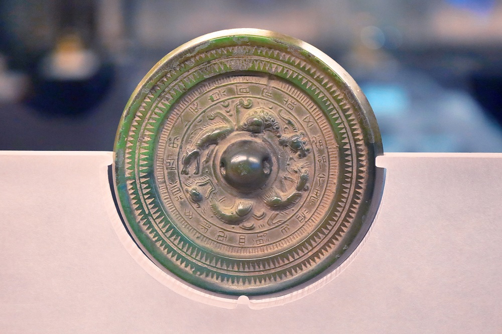 Bronze mirror with engraved motifs of mythical beasts from the Eastern Han Dynasty (25-220), from the collection of the Yichang Museum [Photo/IC]
