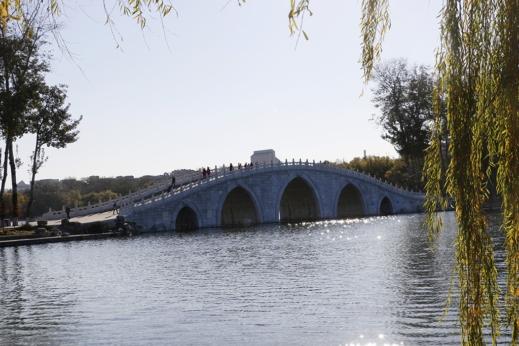 A bridge over the lake in Yuyuantan Park in Beijing [Photo/IC]