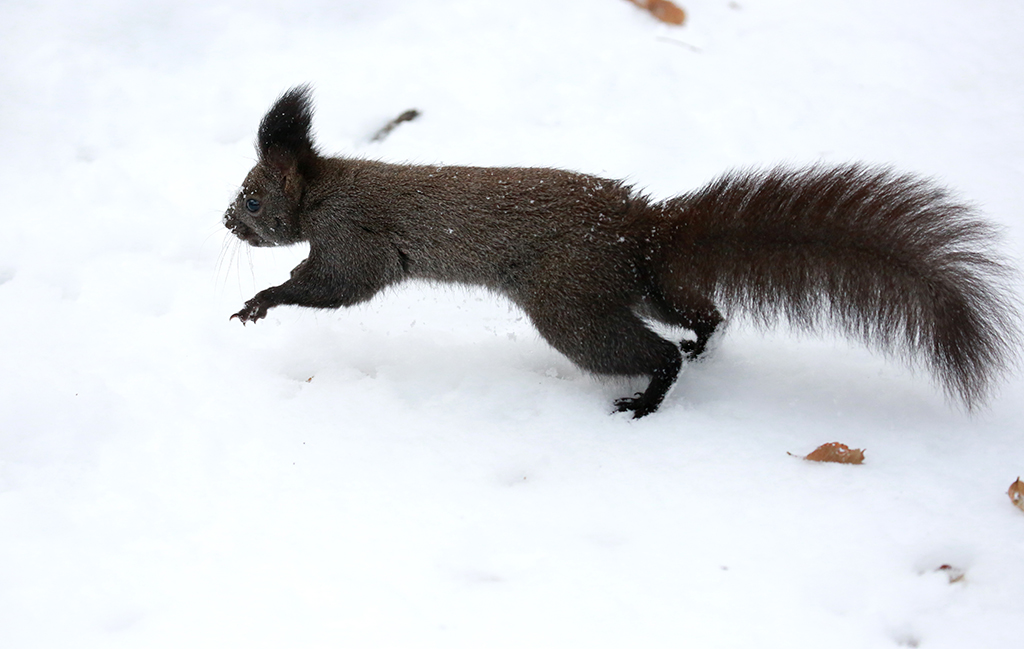A squirrel looks for food in the snow in Beiling Park, Shenyang, Northeast China’s Liaoning province. [Photo/IC]