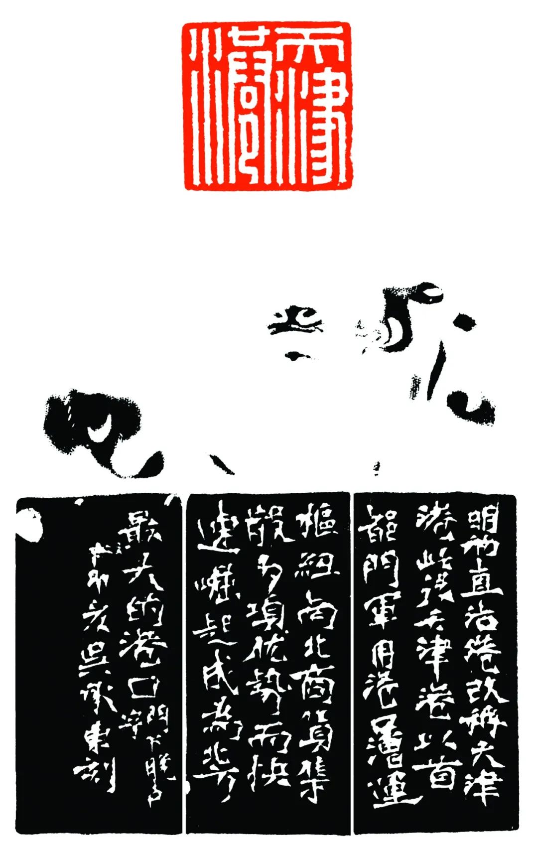 Vermillion impression and ink rubbings of the seal made for the Tianjin Port, the largest port in northern China since the early Ming Dynasty (1368-1644), carved by Wu Chengdong [Photo/Official WeChat account of China Port Museum]