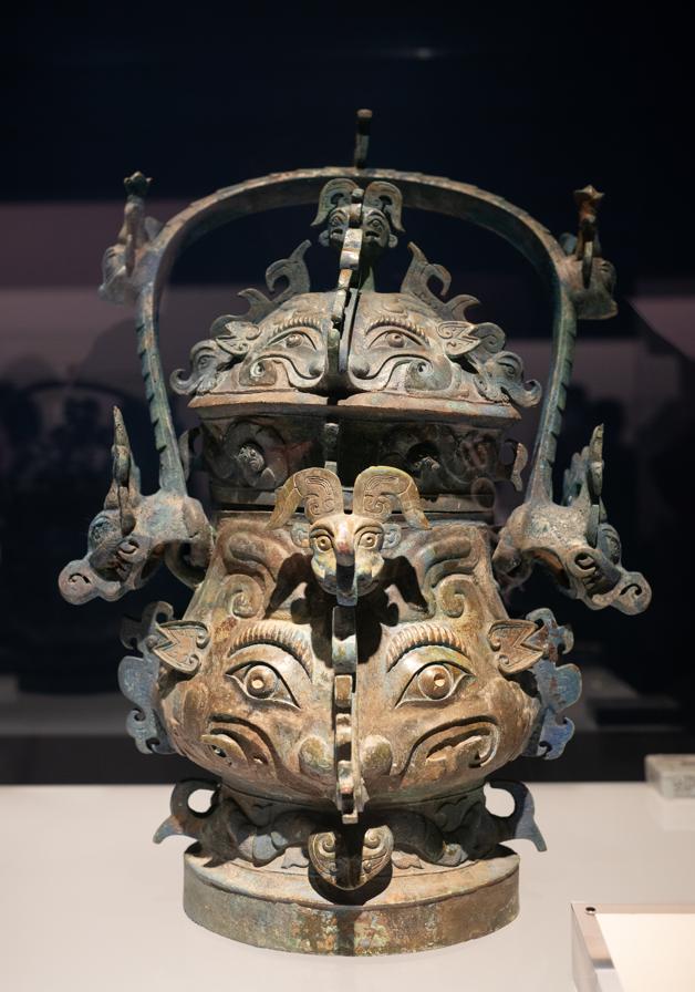 "They had some objects CT scanned and made important new findings about the bronze processing techniques in ancient China." Two tripod cauldrons, one from a private collector and the other from the National Museum of China, have a prominent role in the exhibition. They present a dramatic turning point in the story of E State, said Wei Xinying, a researcher with Shanghai Museum.