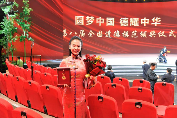 She was chosen along with 67 other honorees on Friday to receive the National Ethical Role Model award at the Great Hall of the People in Beijing. In addition to the top award winners, 254 nominees were recognized.