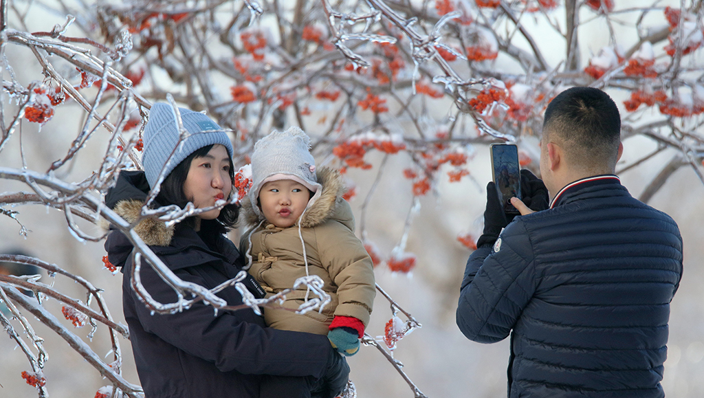 Icicles draw local residents for photo ops in NE China