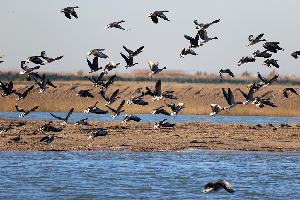 The Yellow River Delta National Nature Reserve in East China’s Shandong province receives flocks of migratory birds. [Photo/IC]