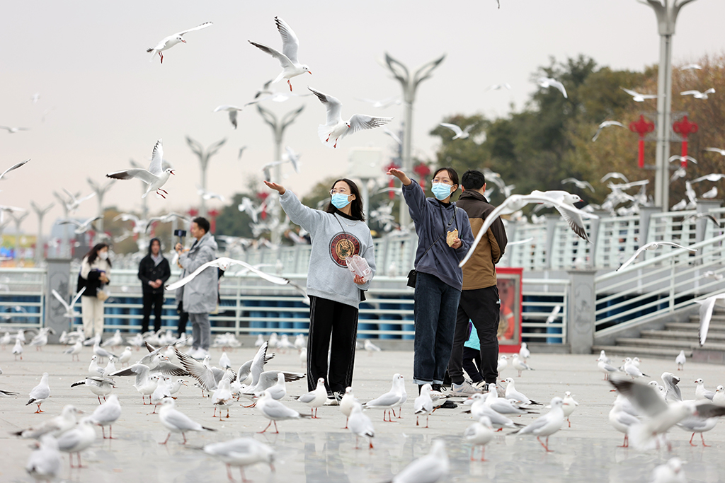 Local residents feed black-headed seagulls in Kunming, Southwest China’s Yunnan province. [Photo/IC]