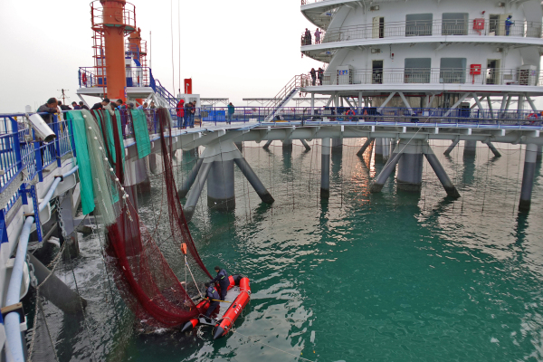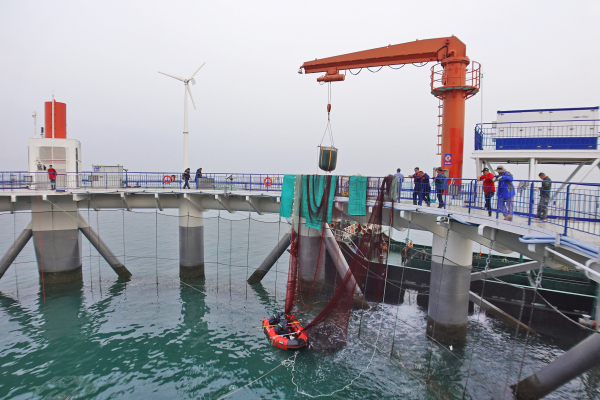 The "Genghai No 1" marine ranch complex off the coast of Yantai, Shandong province entered harvest season in late October. A number of fish, including porgy, spotted knifejaw, and black tetra, were harvested from the smart cages. The output is expected to reach more than 2,500 kilograms this year.