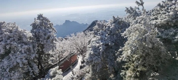 Beautiful rime spruces up Mount Tai in Tai'an, Shandong province. [Photo by Xu Bin/provided to chinadaily.com.cn]