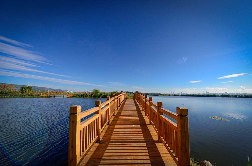 A plank road on a lake in Wangjiadui Wetland Park in Kunming, Southwest China's Yunnan province [Photo/IC]